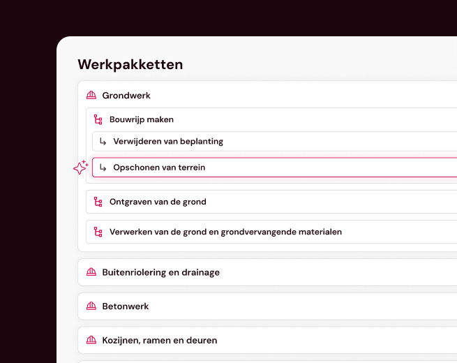 Hoofdaannemers vergelijken offertes inhoudelijk in plaats van alleen op prijs. Verschillen in aannames of scope worden zichtbaar, waardoor jouw inhoud beter wordt begrepen.